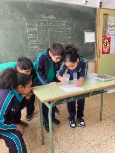A l´área de C. Medi van poder comprobar com podem averiguar la densitat de diferents objectes , utilitzant la balança per mesurar la masa i la probeta per mesurar el volun . Tota la classe ha treballat de valent .