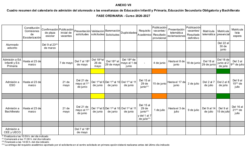 Ya se ha publicado la Resolución que establece el calendario e instrucciones del proceso de admisión para el curso 2026-27